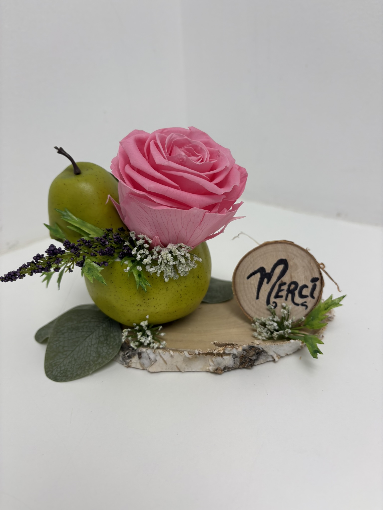 Rose éternel sur son fruit (poire) Merci pour le fruit de votre travail CODE: rosetemer