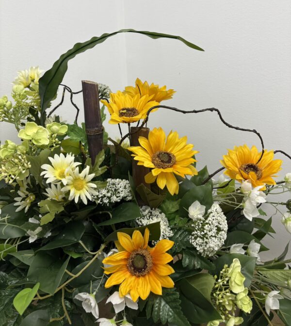 Fleur: quenn lace,tournesol, marguerite jaune et son accompagnement de feuillage.